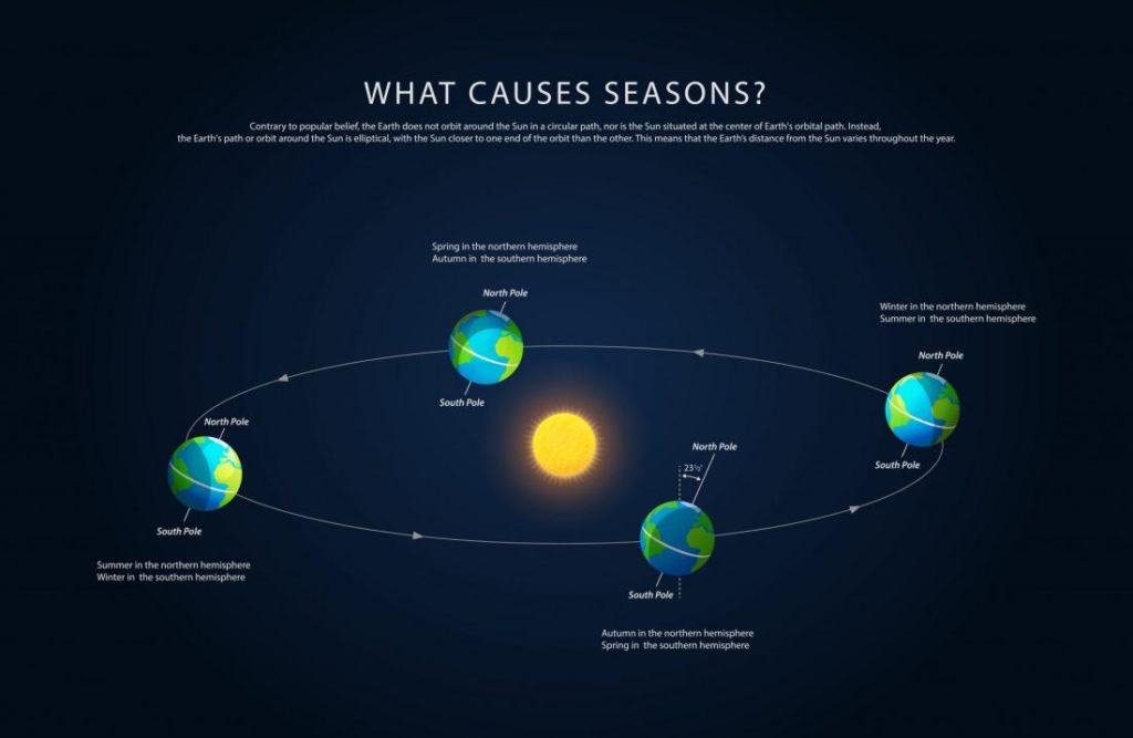 Seasons are experienced because of the tilt of the earth’s axis, not because of distance from the sun.