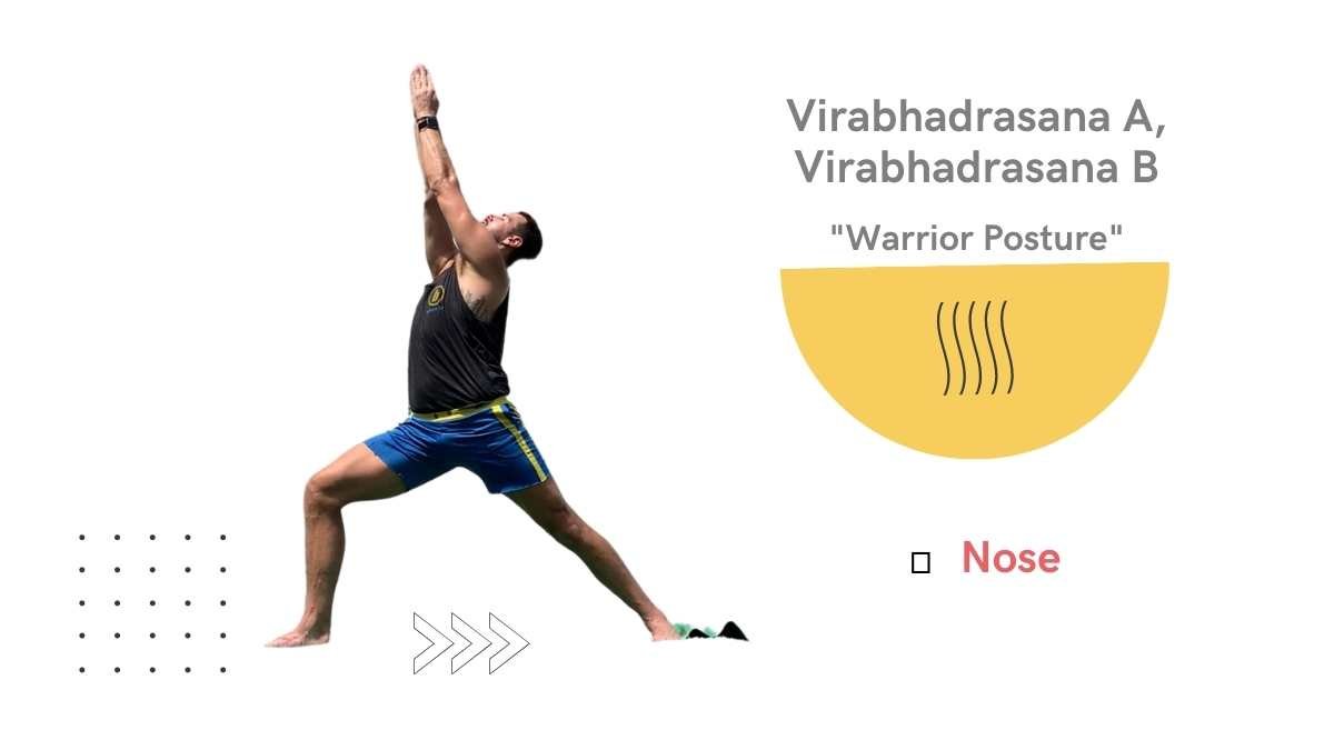 This fundamental standing pose is a type of lunge with the torso extending and the chest opening upward Although a still posture, Warrior I sug- gests disciplined muscle energy waiting to be unleashed. VIRABHADRASANA A & B (14 MOVEMENTS) 7SAPTAInhale, right side Virabhadrasana A8ASTAUExhale, left side Virabhadrasana A9NAVAInhale, right side Virabhadrasana B10DASAExhale, left side Virabhadrasana B Exhale, hands...
