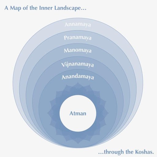 The koshas are a metaphoric “map” of the inner landscape. The model helps to demonstrate the practice of yoga as an inner journey.